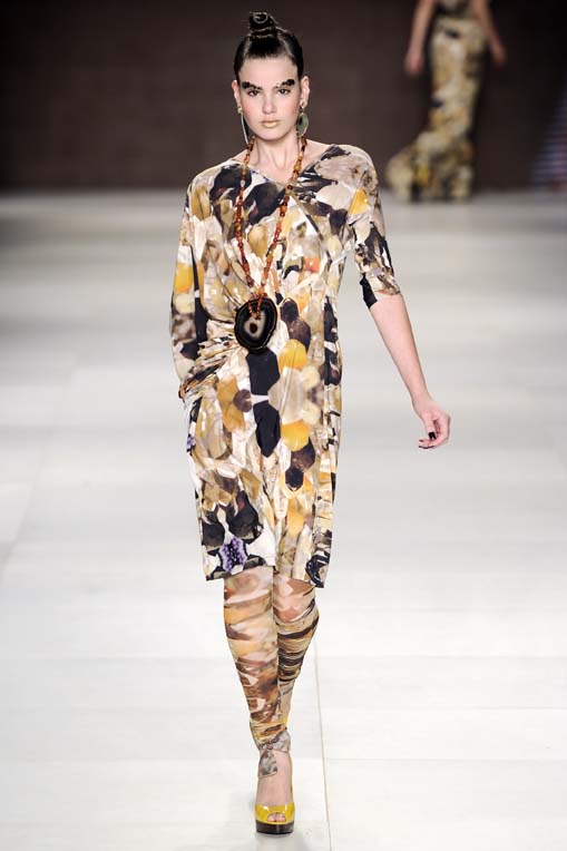 A peça chave da coleção de Inverno 2011 de Alessandra Migani é o macacão, que também apareceu muito em outros desfiles. Com modelagens bem amplas, eles vieram longos e bastante fluidos, com quadris volumosos, tornozelos ajustados e cintura definida.